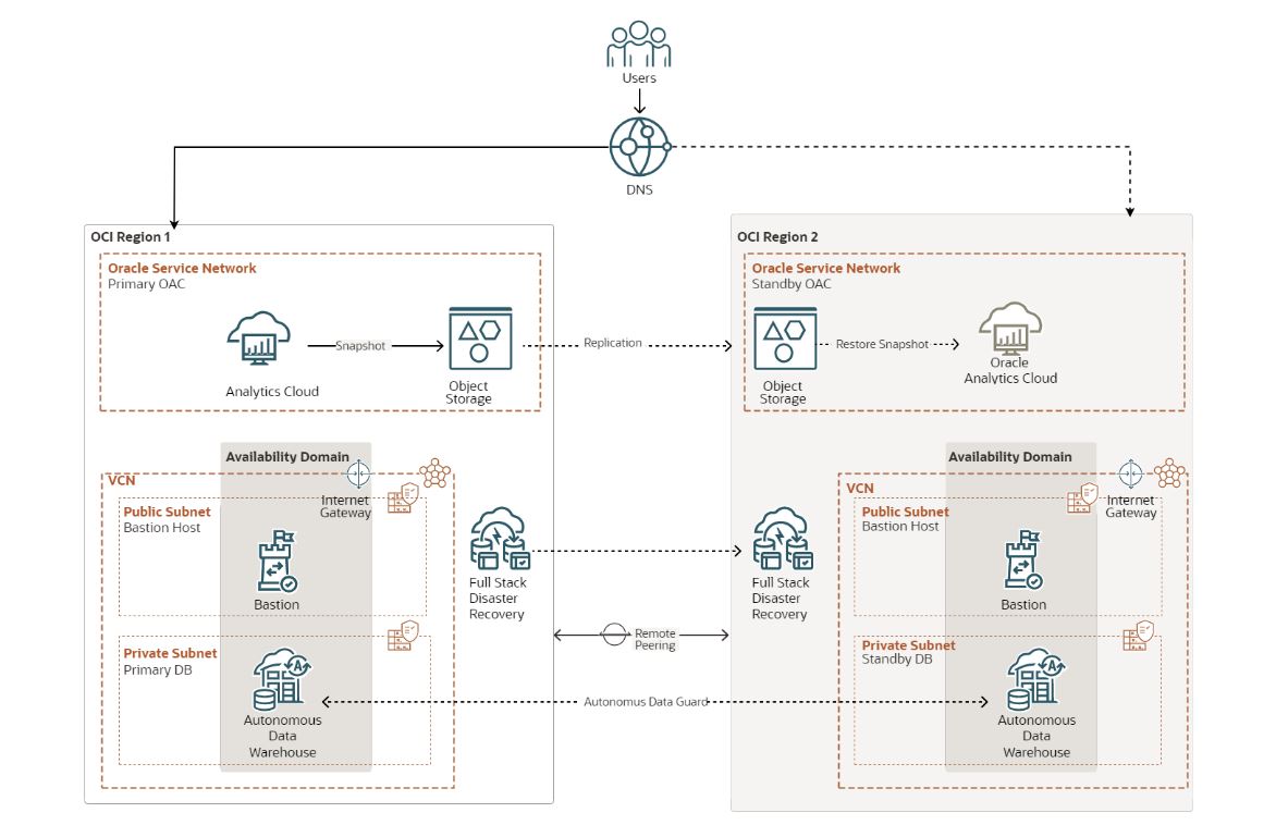 Orchestration of the data replication and DR failover can be done in a couple of different ways. OCI introduced full stack disaster recovery (FSDR) sometime around October of 2022. OCI Full Stack Disaster Recovery service manages the transition of infrastructure, platforms, and applications between OCI regions. I am working with FSDR at one of my customers now and the product has matured since its initial release. There are still some things we need to design around while using the service like customer managed keys for storage and services it has not yet been integrated. FSDR works great for compute, storage (as long as you are not using customer managed keys), Databases like ATP, ADW, ExaCS. While FSDR is not integrated with services like Oracle Analytics and Essbase, it can be used to orchestrate the DR failover using custom scripts. Customers that do not want to use FSDR can leverage other methods for data replication and orchestration such as rsync or third party tools like Commvault. I just wanted to highlight an OCI cloud native feature that could be leveraged for the orchestration.